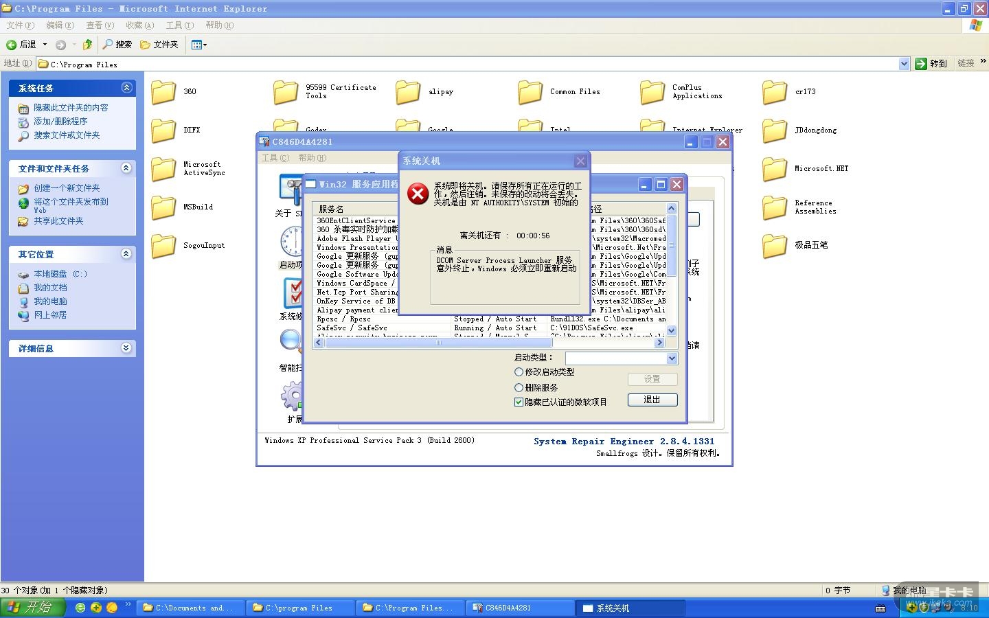 具体情况:电脑是在公司局域网内的,重装完,设置好IP地址后,没多久,就出自动弹出“热点资讯”和“广告窗体”,经常弹出dcom server process launcher 系统即将关机”[attach]788436[/attach]