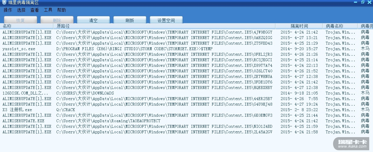 近些天电脑上的瑞星反复杀ALIMISERUPDATE.EXE,每次都隔离掉了。但过一会儿,却又出来了隔离掉这个文件的提示,意味着根本没有杀干净,而且似乎总也杀不干净这个文件,一遍一遍没完没了,怎么办?见附图