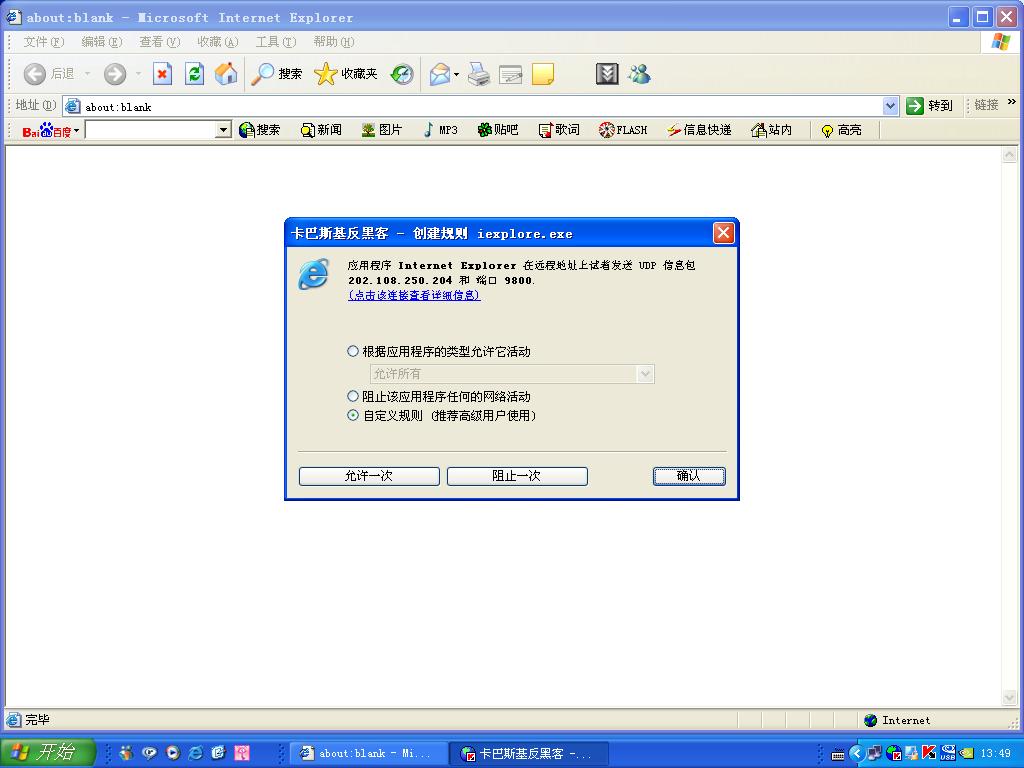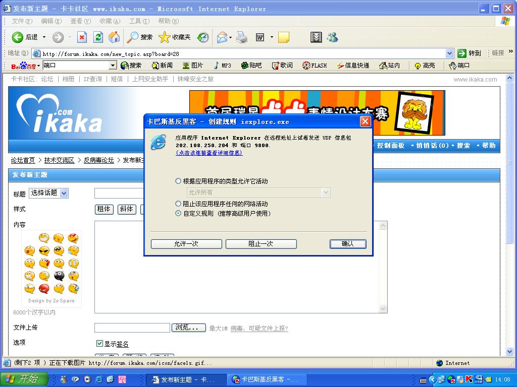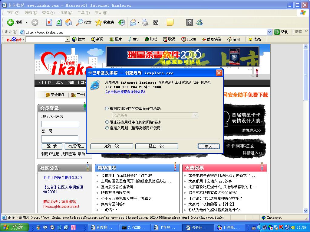 前几天上网老是出现卡住不动的现象.今天上网卡巴防火墙老跳出提示见下列截图.想请高手帮分析一下,我的电脑是不是被控制了?该怎么解决?
