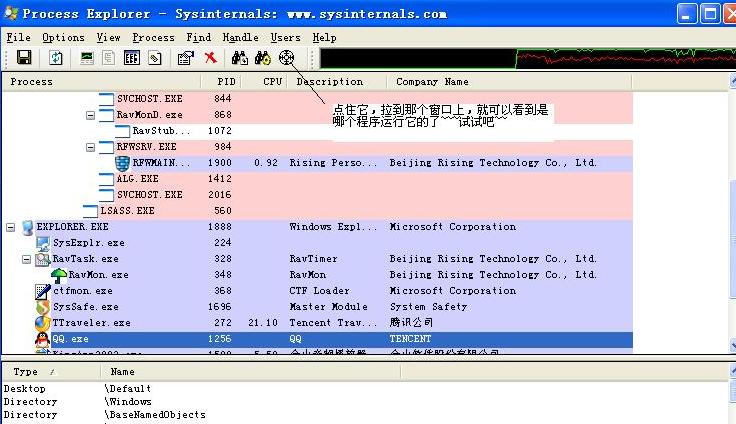 补充:process不能在具体了,只能只是到explorer.点击黄色叹号也没反应.搞不清楚是那个东西