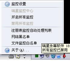 今天中了木马,瑞星监控打不开了,我杀了病毒后,瑞星监控一样打不开,我点开启监控,显示是无法启动,全部都启动不了啊。怎么办啊?刚刚才发现,右击监控,连转入后台处理也没了