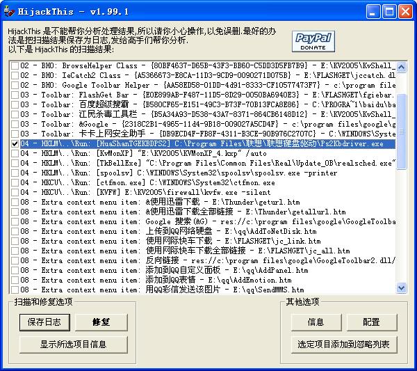 像HIJACKTHIS这些软件可以勾选某项,再点修复