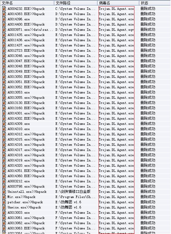 E:\下的劲乐团,剑侠,program files 下的几个毒请手工删除