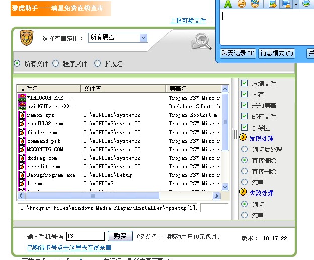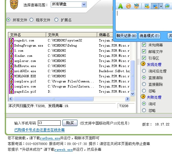 我的机器中了这个病毒!试了网上的方法感觉特别麻烦!有没有它的克星软件或者专杀工具!高手帮我呀!并且我装杀毒软件也装不上去!我用雅虎助手----瑞星在线杀毒杀出来19个病毒,下面是抓的三张图!