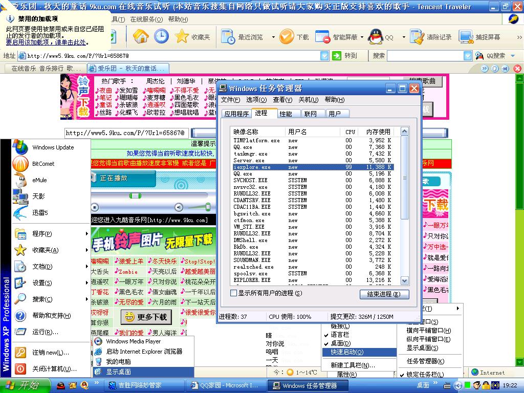 最近几天机器老是跳出这个提示,然后系统资源就被占用99%,任务管理器结束不了任务,必须重启动,请注意看我截的图里面用红线画的地方。。