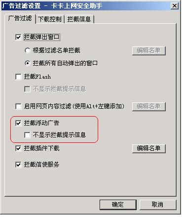 卡卡上网安全助手无法拦截浮动广告???