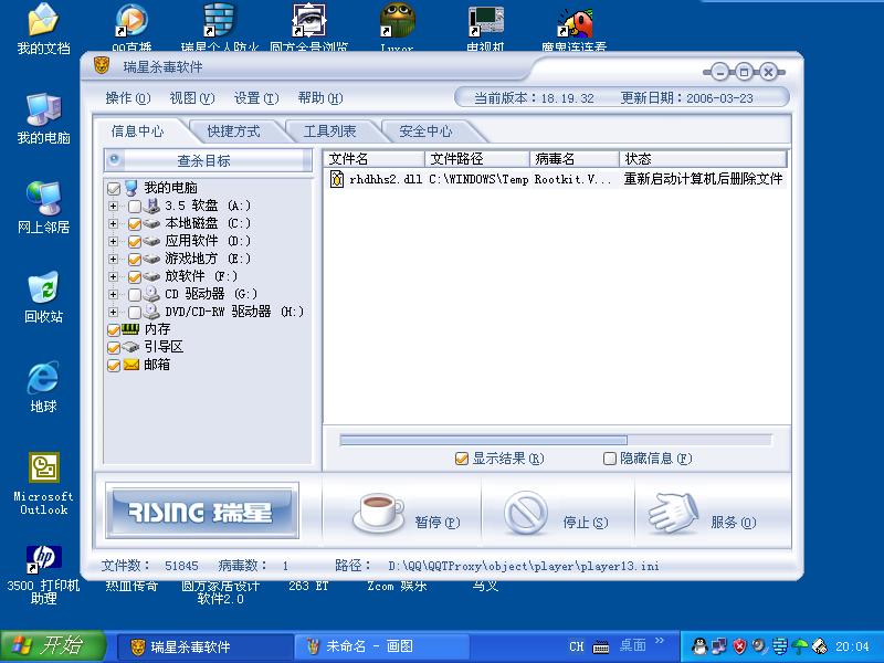 监控一直都有,病毒名:Rootkit.Vanti.gen,状态是重新启动删除。我重新启动了,但还是有。