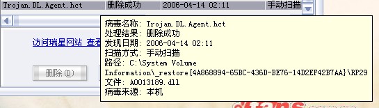 中了。Trojan.DL.Agent.hct 瑞星杀不了,该什么办?