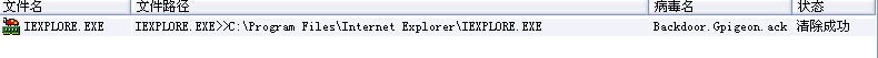 文件名字为:IEXPLORE 病毒名为:Backdoor.Gpigeon.ack