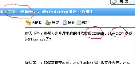 珠海市出现了CIH1.45病毒。。请windowsxp用户小心哦!