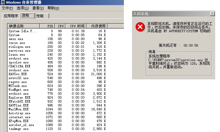 一分钟重启,图中重启的提示,还有运行的程序。帮忙啊!
