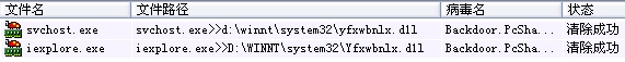 昨天,我用瑞星杀了Backdoor.PcShare.f 这个病毒,这个病毒依附在svchost.exe 和 iexplore.exe 中,提示已经消除成功!