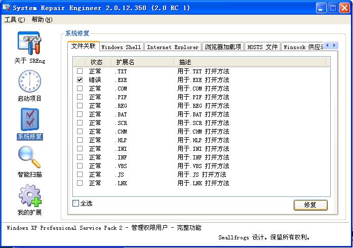 )改名为SRENG.com后启动它,用其修复了一下文件关联