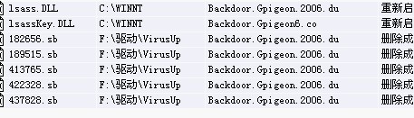 LSASS。DLL  c\winnt  Backdoor.Gpigon.2006.du