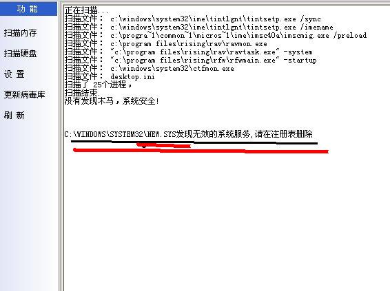 不过文件很可能已经没了,所以木马克星才会说有无效的系统服务,这并不是它查到了病毒,而是发现这个服务对应的文件已经没了,才这样提示你而已。