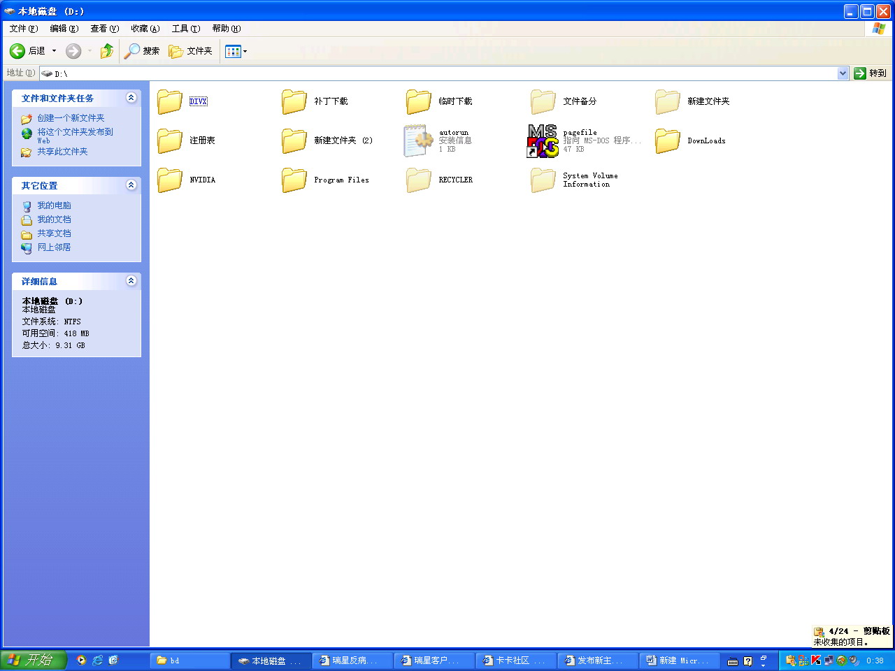 我就看到d盘多了2个文件一个就是那autorun安装信息,还有那pagefile说是指向什么程序的,估计就这2毛病,我删了n次了可以删但是再打开d盘他又有了,这是图3!