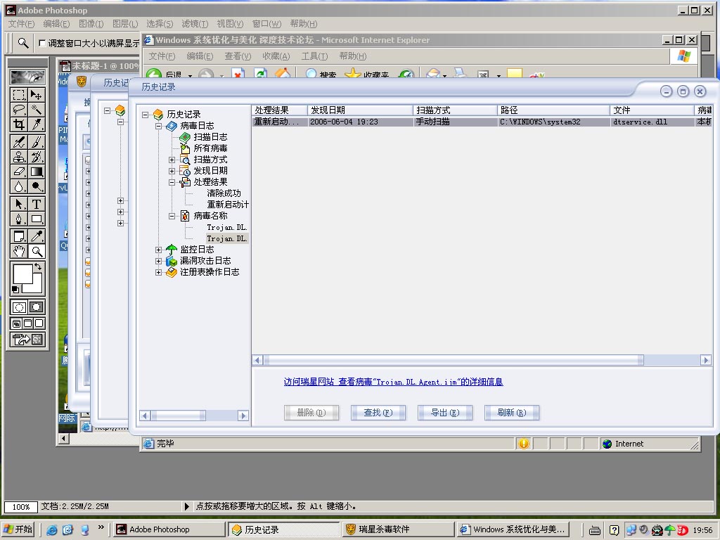 大家帮我看看,怎么处理,我的系统昨天开始使用windows默认的浏览器explor上网,大家网站总是跳出一些我没有点击的网站来,而且浏览器打开一个网站半天没有反应,系统爆慢,我用瑞星查毒查出下面这种病毒,而且感染的是c盘系统目录下的那个文件,杀毒后要求我重新启动电脑然后删除了那个感染的文件,就出现了两个问题,一是加载模块失败,说明这个文件被删了,那个文件感染了病毒被删掉了,请问那个文件是系统有用的文件吗,二是用浏览器浏览的时候提示不能为read??怎么回事啊,谢谢大家帮我看看?