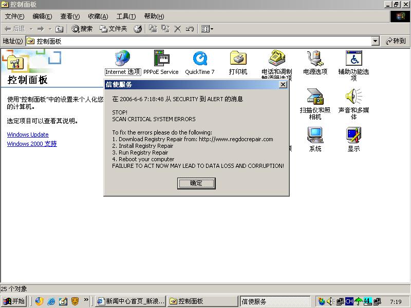 当连网时总是出现“信使服务”的各种窗口.(如后面)