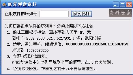还有,在运行这个"修复硬盘资料"的东东时,会显示"瑞星防火墙"的图标在屏幕的右下角,关闭后消失.