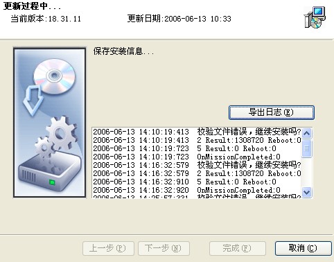 2006-06-13 14:16:32:579 校验文件错误,继续安装吗?