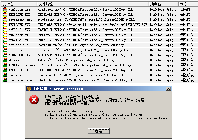 杀毒杀了好多,但杀一半就报错