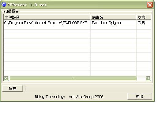 路径是:C:\Program Files\Internet Explorer\IEXPLORE.EXE -->Backdoor.Gpigeon