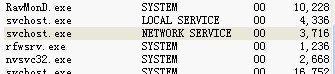 我打开任务管理器.发现有一个文件,文件名为svchost.exe;用户名为:NETWORK SERVICE