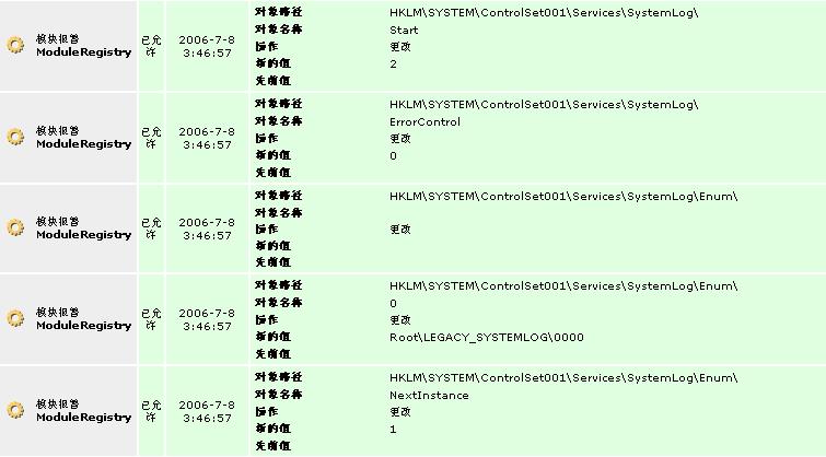 双击运行病毒样本,SSM提示其运行,并提示C:\WINDOWS\system32\services.exe欲运行C:\WINDOWS\system32\shellext\services.exe,通通点“允许”-“操作仅当次”。同时模块报警,该程序创建服务项,在意料之中,先不理。之后SSM静下来。