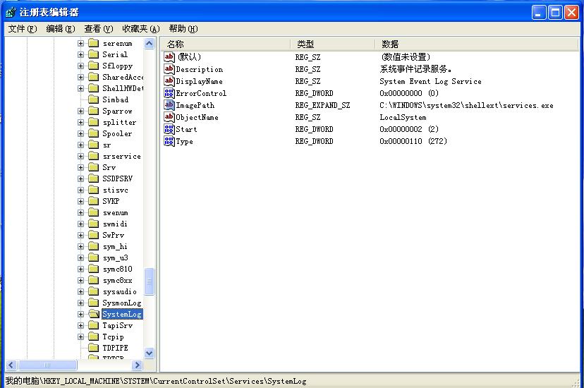在QQ群上有一位网友(同时也是卡卡社区的会员)因中灰鸽子而求助,HijackThis日志中可见其服务项systemLog,灰鸽子病毒文件为C:\WINDOWS\system32\shellext\services.exe。