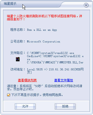 [PID: 2948][C:\WINNT\system32\rundll32.exe]  <Microsoft Corporation><5.00.2134.1>