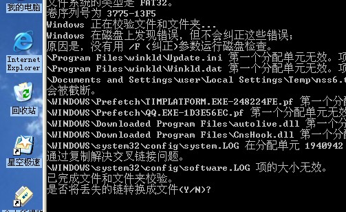 高手帮我看下日志吧 前几天杀毒未果 现在开机有了这样的错误 说是损坏文件,要我运行Chkdsk 然后我运行之 截图如下