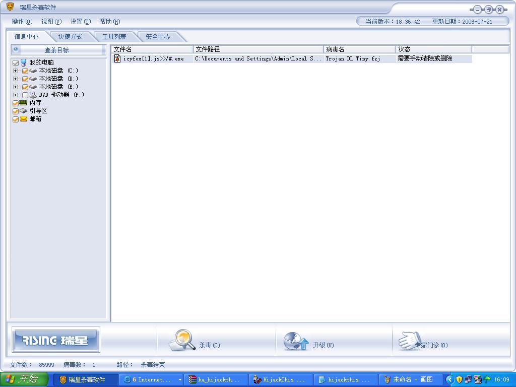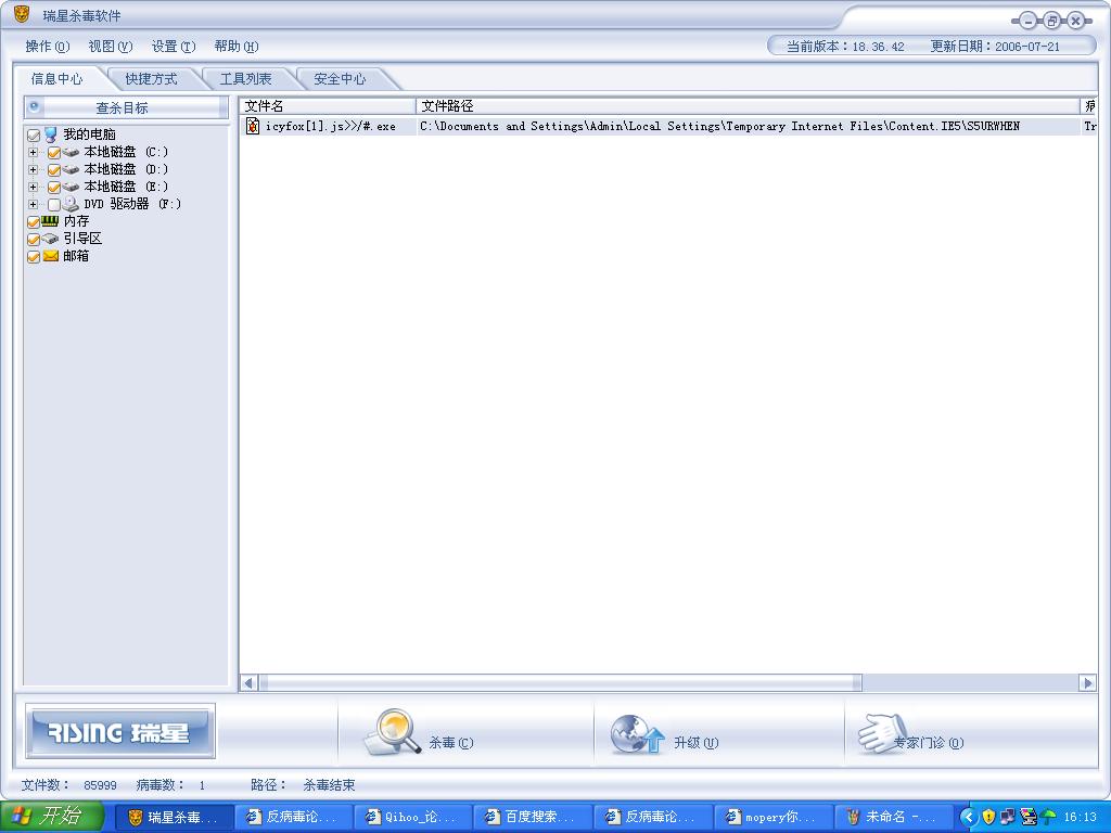 瑞星卡卡安全论坛技术交流区反病毒/反流氓软件论坛 mopery你还在吗?帮我看看中了什么毒