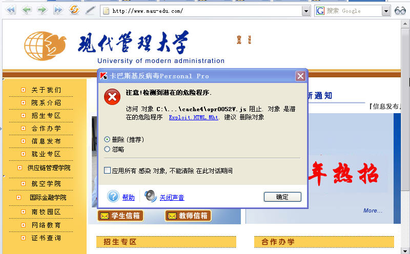 两次都是搜索"现代管理大学",两次都中了毒,大概是两次都点开了同一个网站.......极度唾弃自己中....