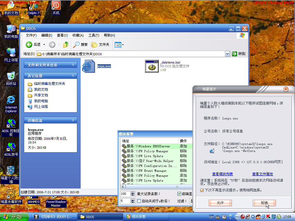 感染完成时,样本目录下生成deleteme.bat文件,然后同时与原样本lexps.exe自取短见.企图销毁源木马文件.