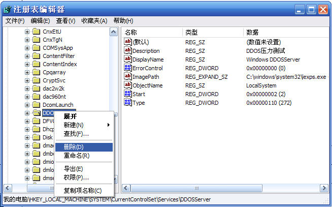 删除左边的DDOSServer项.