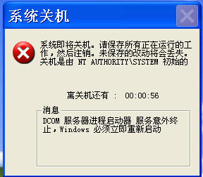 电脑不断自动重启,应该不是冲击波和震荡波,因为我的XP是经常升级的,现在也是最新版本,用瑞星的冲击波和震荡波专杀也没找到病毒,重启提示如图,大家帮帮忙,看怎么处理,谢了
