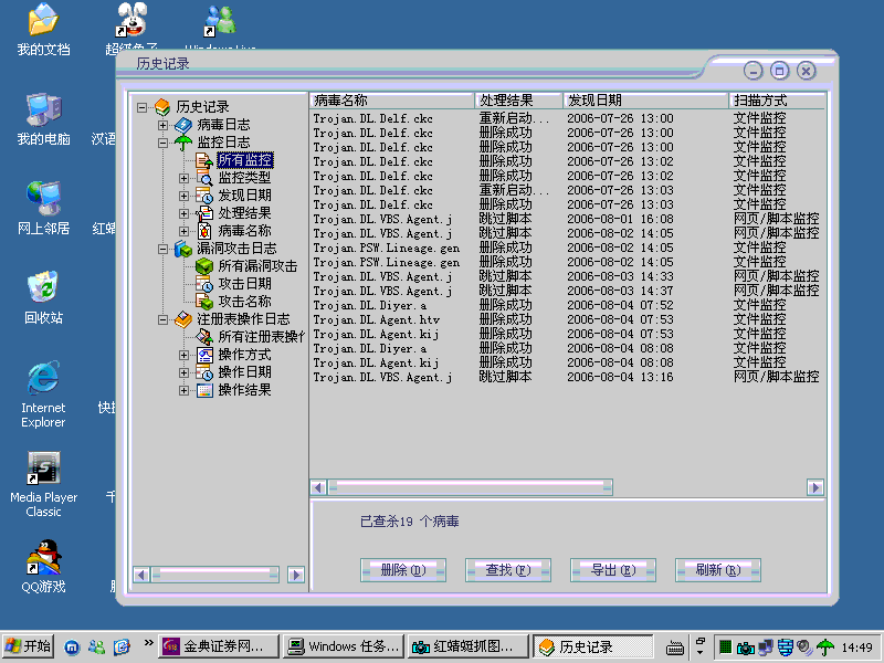 请高手们帮我看看监控记录的抓图,有两个毒瑞星杀不掉.该如何处理?