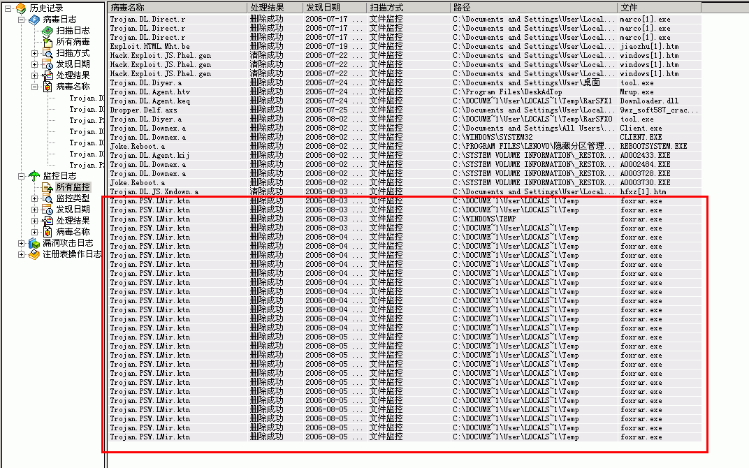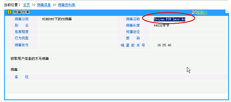 Trojan.PSW.Lmir.kt总是跳出来,被瑞星删除,等一会又会出来,不能彻底解决,进入安全模式还是查不到,但一出来就会被瑞星删除.郁闷啊!那位能帮一下忙,木马克星也没彻底干掉啊!!!