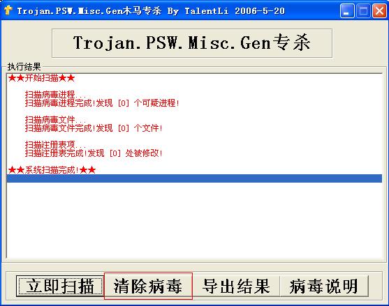 对专杀操作进行说明:确认自己中了 C:\WINDOWS\LSASS.EXE 后..运行此专杀...点立即扫描...会列出结果...然后点清除病毒...重启...即可...