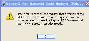 ①DirectX for Managed Code ruquries that version of the.NET Framework be