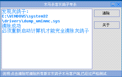 我拿的是灰鸽子专杀0.52版本杀出来的,有时杀掉了重起后还不一定杀的出来,好象会自己创建,每当我觉得机器很卡,我就觉得在自己创建了,然后杀一下,果然有,重装系统都杀不了,我没办法了