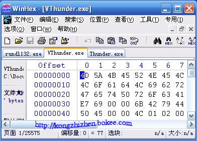 将拿到的几个样本文件看了下,其中rundl132.exe为病毒文件,VThunder为感染后的文件,Thunder为原文件。截图如下: