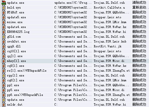 用两个专杀后打开瑞星杀毒。已经感染各种各样的木马了....