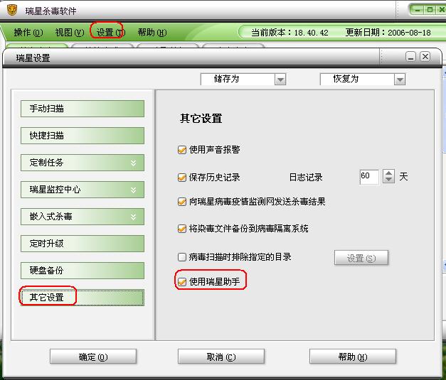 有没有在瑞星的设置里有无问题啊?参见下图红框所示设置一下?看看能否解决问题?