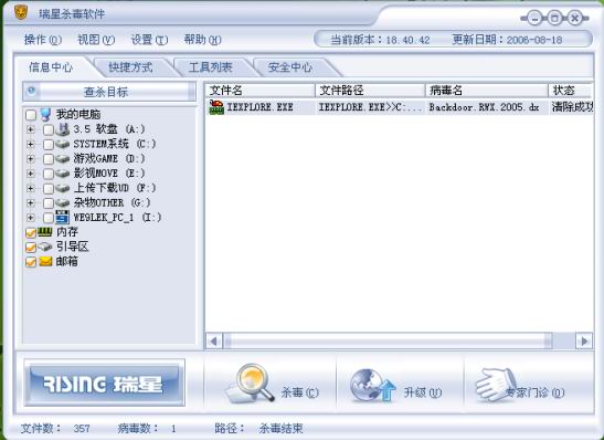 瑞星卡卡安全论坛技术交流区反病毒/反流氓软件论坛 求救怎么清除Backdoor.RWX.2005.dx病毒