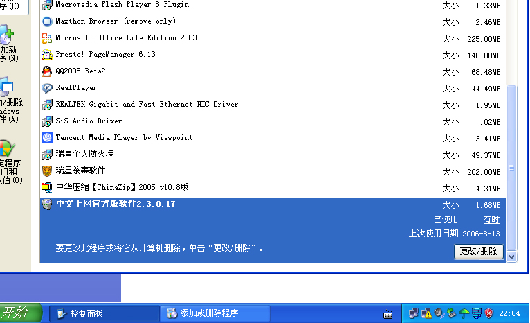 这是我“控制面版”里“添加和删除程序”的截图,请问这个“中文上网官方版软件”是什么东西?我从来都没装过它啊~ 是不是我在安装其他免费软件时捆绑装上的?卸掉它应该没什么问题吧?