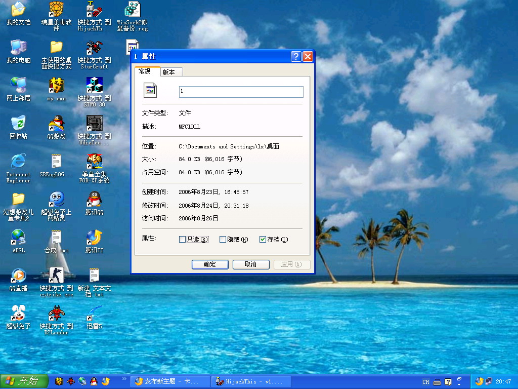 超级兔子优化后卸载插件后,提示插件修改了winsock2,备份了注册表文件,建议我重新启动,启动后就出现了这个叫"1"的不明文件..