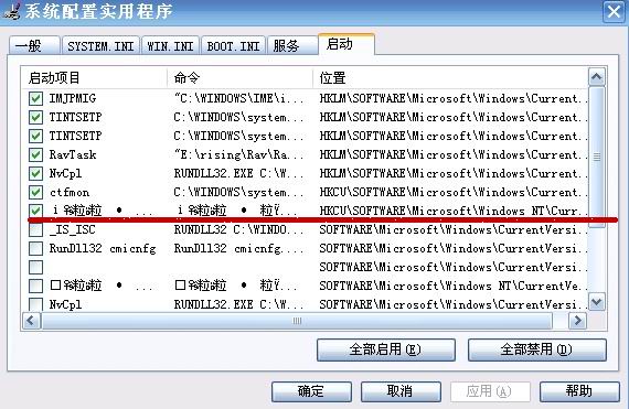 这也都算了。我不管如何在MSCONFIG下禁止。删除。下次开始又有。。。。大家要帮帮我