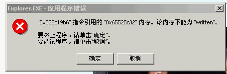 在使用动态分配的应用程序中,有时会有这样的情况出现:程序试图读写一块「应该可用」的内存,但不知为什么,这个预料中可用的光标已经失效了。有可能是「忘记了」向操作系统要求分配,也可能是程序自己在某个时候已经注销了这块内存而「没有留意」等等。注销了的内存被系统回收,其访问权已经不属于该应用程序,因此读写操作也同样会触发系统的保护机制,企图「违法」的程序唯一的下场就是被操作终止执行,回收全部资源。计算机世界的法律还是要比人类有效和严厉得多啊!像这样的情况都属于程序自身的BUG,你往往可在特定的操作顺序下重现错误。无效光标不一定总是0,因此错误提示中的内存地址也不一定为「0x00000000」,而是其它随机数字。如果系统经常有所提到的错误提示,下面的建议可能会有说明 :