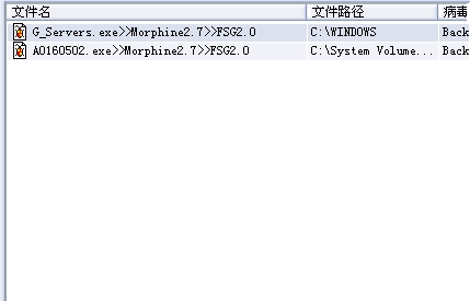 刚刚用瑞星扫了一下病毒,结果查出了俩个: